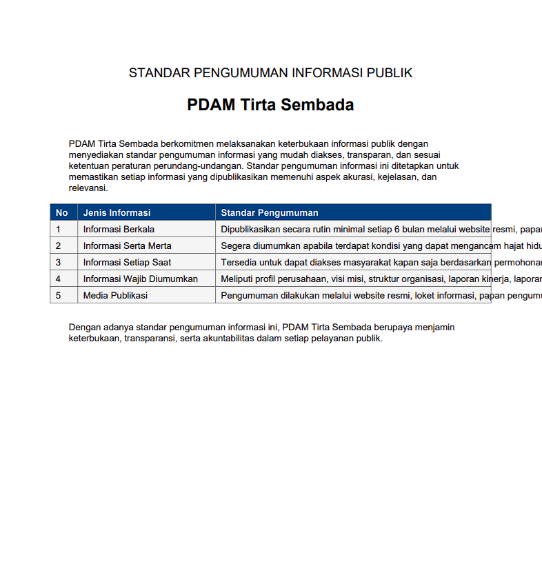 Laporan Tahunan Layanan Informasi Publik PDAM Tirta Sembada